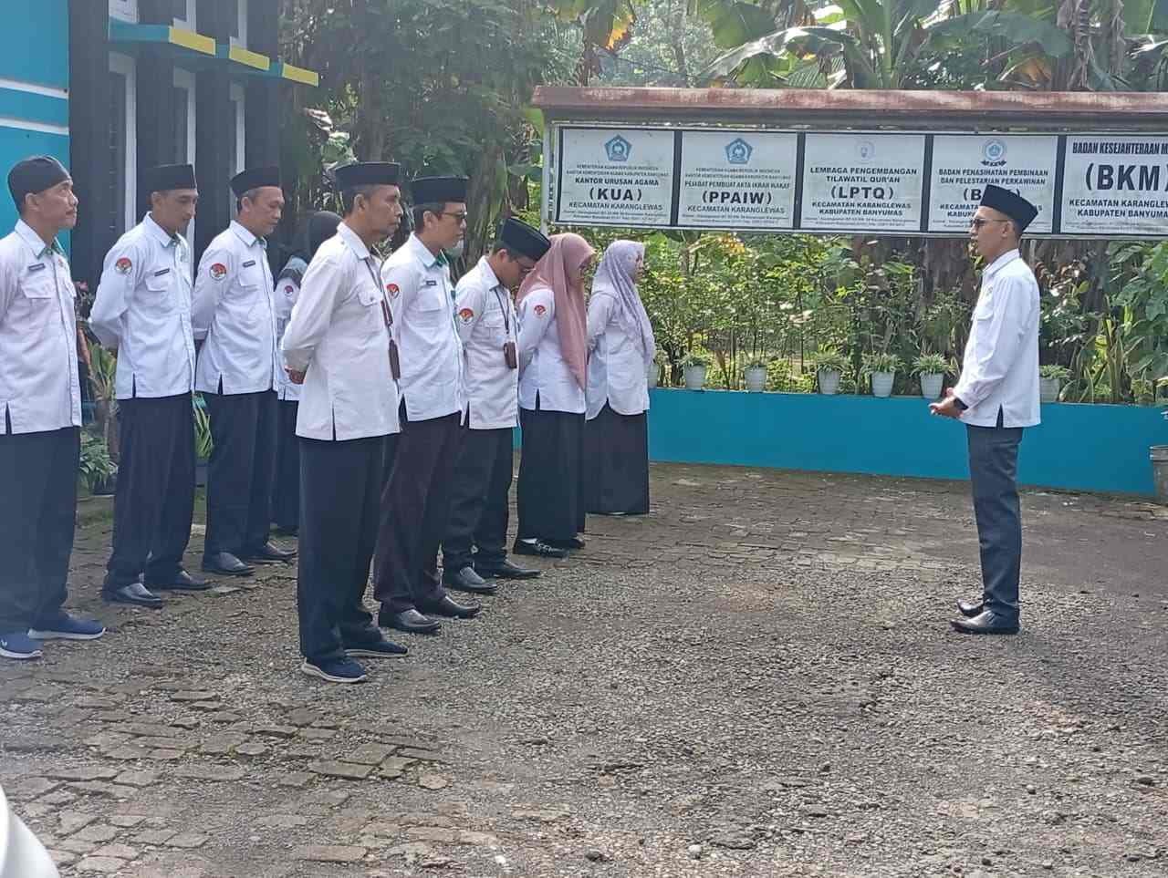Karanglewas – Kegiatan apel rutin Senin pagi dilaksanakan pada tanggal 13 April 2026 di lingkungan KUA Karanglewas. Apel diikuti oleh seluruh pegawai, mulai dari penghulu, staf, hingga penyuluh dengan penuh khidmat dan kedisiplinan. Senin (13/04)