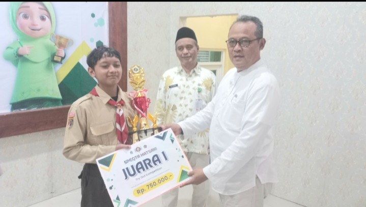 Purwokerto - Rangkaian kegiatan Speqta Matsani ditutup dengan sesi pengumuman kejuaraan dan pembagian hadiah yang secara langsung diserahkan oleh Kepala Kantor Kementerian Agama Kabupaten Banyumas Ibnu Asaddudin, di dampingi oleh Kepala MTs N 1 Banyumas Ali Nurdin, bertempat di Aula Sudirman MTs N 1 Banyumas. Sabtu (14/02)