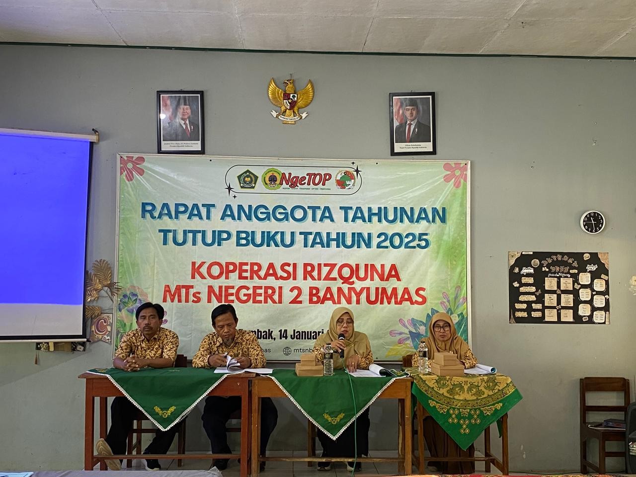 Banyumas (Humas) – Bertempat di Ruang Rapat Madrasah, Koperasi Rizquna MTs Negeri 2 Banyumas sukses menyelenggarakan Rapat Anggota Tahunan (RAT) Tutup Buku Tahun 2025. Kegiatan ini merupakan agenda tertinggi dalam organisasi koperasi sebagai bentuk transparansi dan akuntabilitas kepada seluruh anggota. Rabu (14/01/2026)