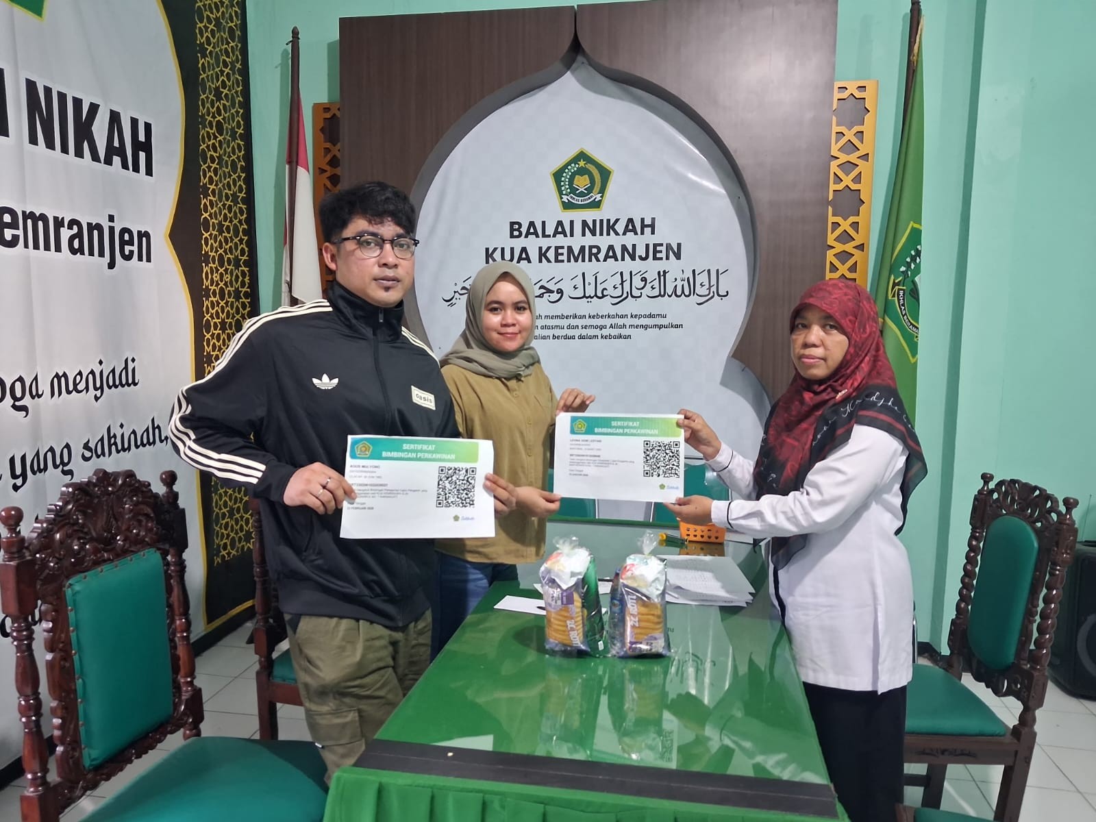 Banyumas - Pasangan calon pengantin Umar dan Fatimah dari Desa Pageralang Kemranjen mengunjungi KUA Kemranjen sekitar pukul 09.00 WIB untuk mengikuti bimbingan perkawinan. Rofiqoh, Penyuluh Agama Islam di KUA tersebut, memberikan materi penting yang menjadi bekal utama kedua calon pengantin ini, terutama mengenai manajemen konflik dalam keluarga. Selasa (14/04)