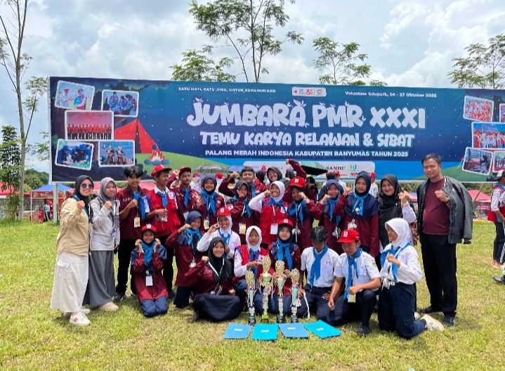 Banyumas – Palang Merah Remaja (PMR) MTs Negeri 1 Banyumas berhasil menorehkan prestasi gemilang dengan meraih total lima piala dalam ajang Jumpa Bakti Gembira (Jumbara) PMR XXXI PMI Kabupaten Banyumas. Kegiatan ini diselenggarakan pada 24 hingga 27 Oktober 2025 di Bumi Perkemahan Volunteer PMI Kabupaten Banyumas, Desa Banteran, Kecamatan Sumbang, dan diikuti oleh PMR dari berbagai lembaga pendidikan. MTs Negeri 1 Banyumas mengikutkan 20 siswa yang tergabung dalam anggota PMR Madya Nahlah Nektar pada kegiatan Jumbara tersebut. Senin (27/10)