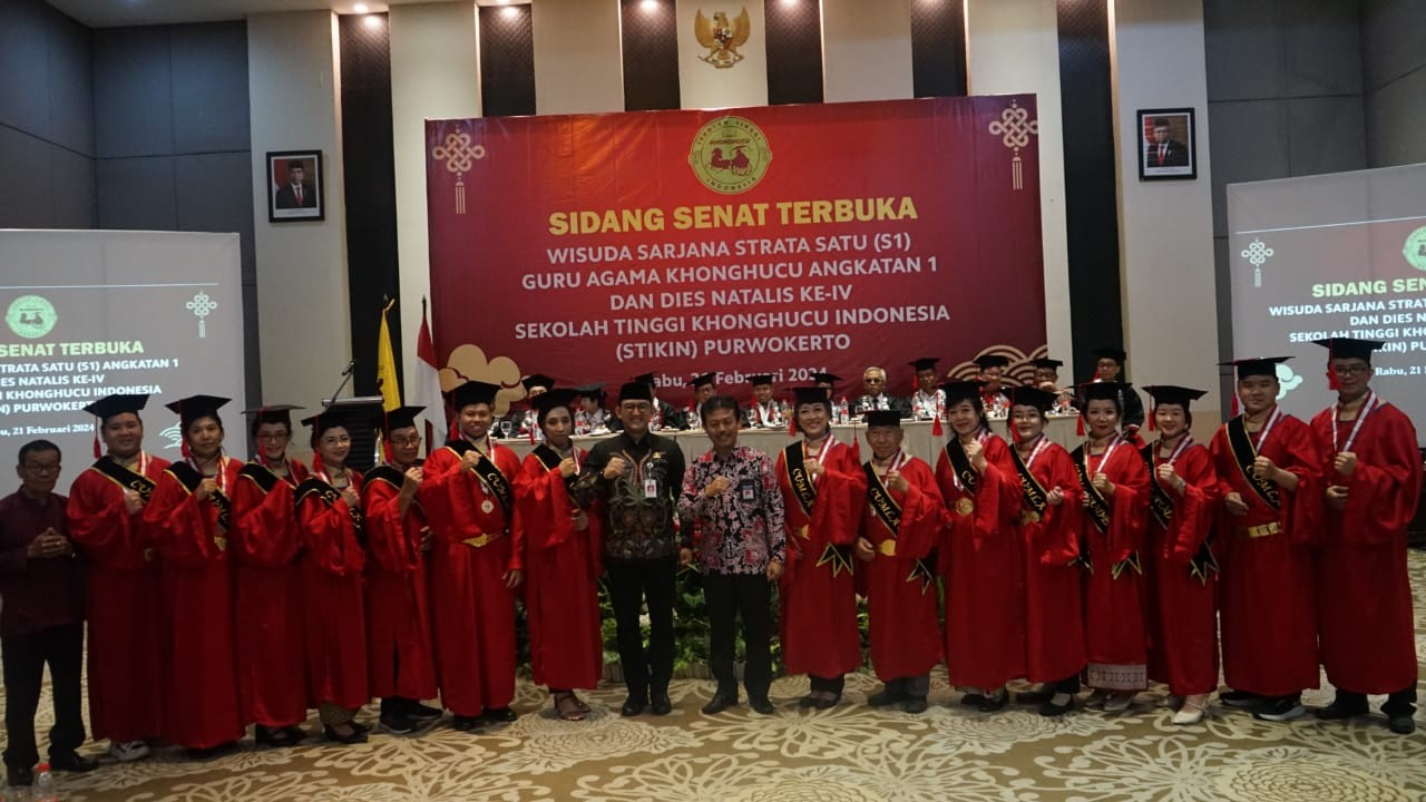 Wisuda perdana yang diikuti oleh 19 mahasiswa dari Fakultas Pendidikan Agama Khonghucu ini dihadiri oleh Kepala kantor Wilayah Kementerian Agama Provinsi Jawa Tengah Musta’in Ahmad, PJ Bupati Banyumas Hanung Cahyo S, Kepala Kantor Kementerian Agama Kabupaten Banyumas Ibnu Asaddudin, Kasubbag TU, Kasi dan Penyelenggara Kantor Kemenag Kab Banyumas, para pendiri STIKIN.