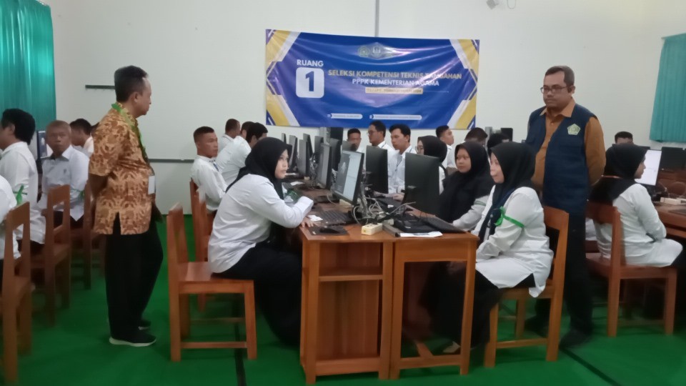 Purwokerto (Humas)- Sebanyak 159 honorer yang bekerja di lingkungan Kantor Kementerian Agama (Kemenag) Kabupaten Banyumas, UIN Saizu Purwokerto, dan Madrasah Negeri mengikuti Seleksi Kompetensi Teknis Tambahan (SKTT) PPPK Tahap 2 yang dilaksanakan di MAN 1 Banyumas. Sabtu (31/5).