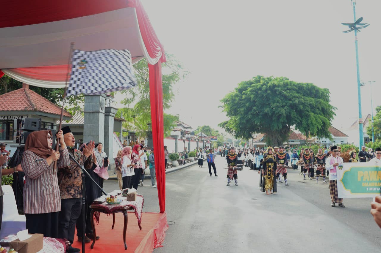 Wakil Bupati Dwi Asih dalam sambutannya menyampaikan apresiasi atas partisipasi masyarakat dan menekankan pentingnya momentum Tahun Baru Islam sebagai pengingat untuk memperkuat ukhuwah dan meningkatkan amal ibadah.
