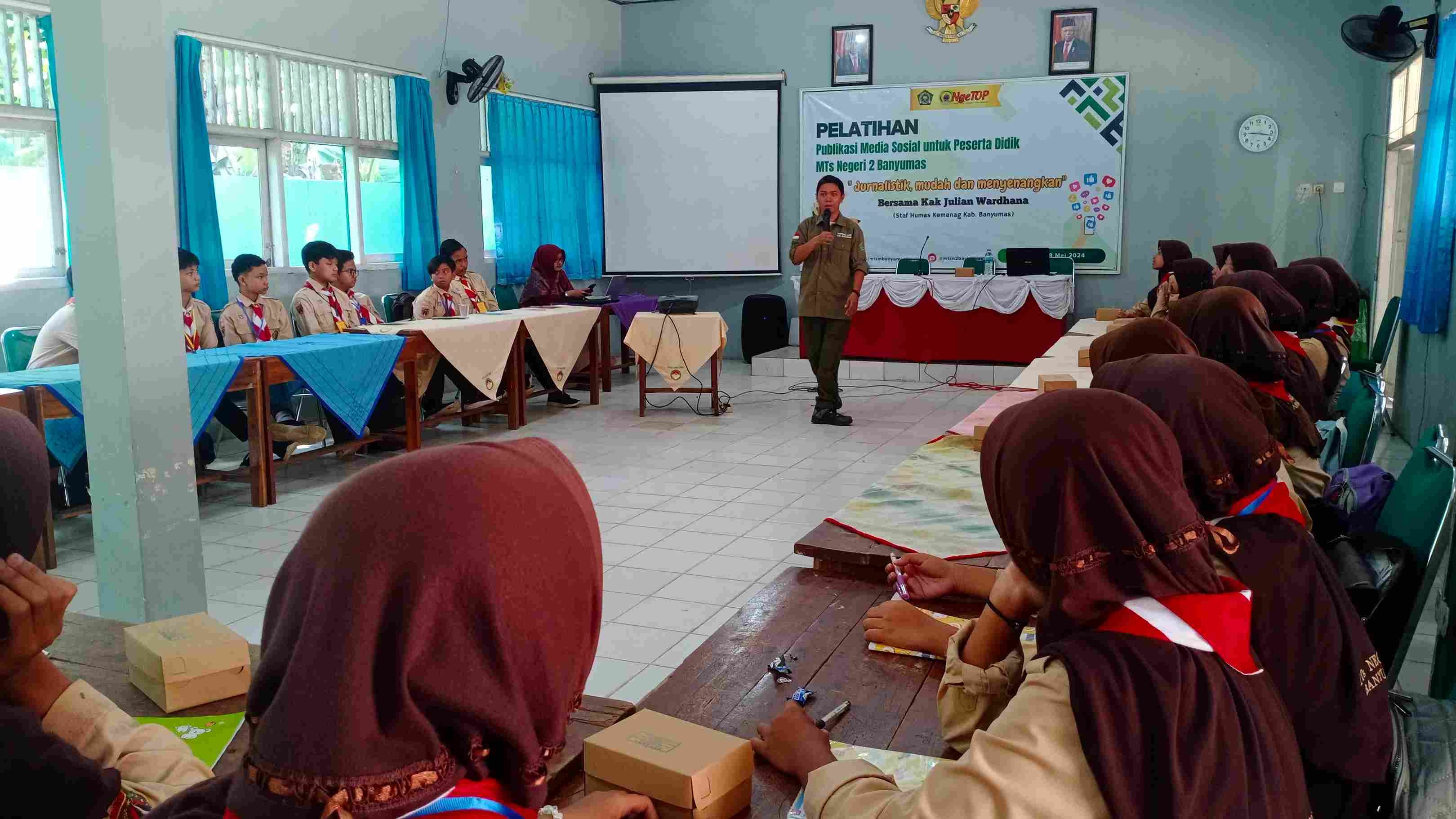 Banyumas (Humas) - Sebanyak 30 peserta didik MTsN 2 Banyumas mengikuti kegiatan pelatihan Publikasi Media Sosial dengan tema "Jurnalistik, mudah dan menyenangkan" bertempat di ruang rapat dan ruang multimedia MTsN 2 Banyumas, Sabtu (18/5).