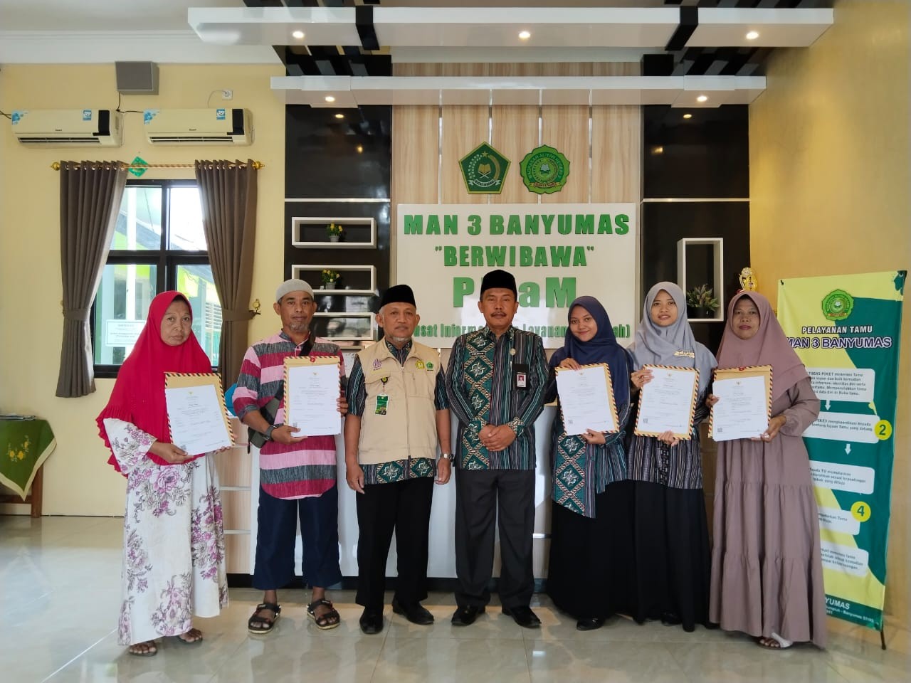 Banyumas (Humas) : 40 Pelaku usaha yang bejualan dan berdomisili disekitar MAN 3 Banyumas menerima sertifikat halal bagi produk mereka yang dikeluarkan oleh Badan Penyelenggara Jaminan Produk Halal (BPJPH). Penyerahan ini dilakukan secara simbolis di Ruang PILAM MAN 3 Banyumas oleh Kepala madrasah Solikhin. Jumat (12/10/23)