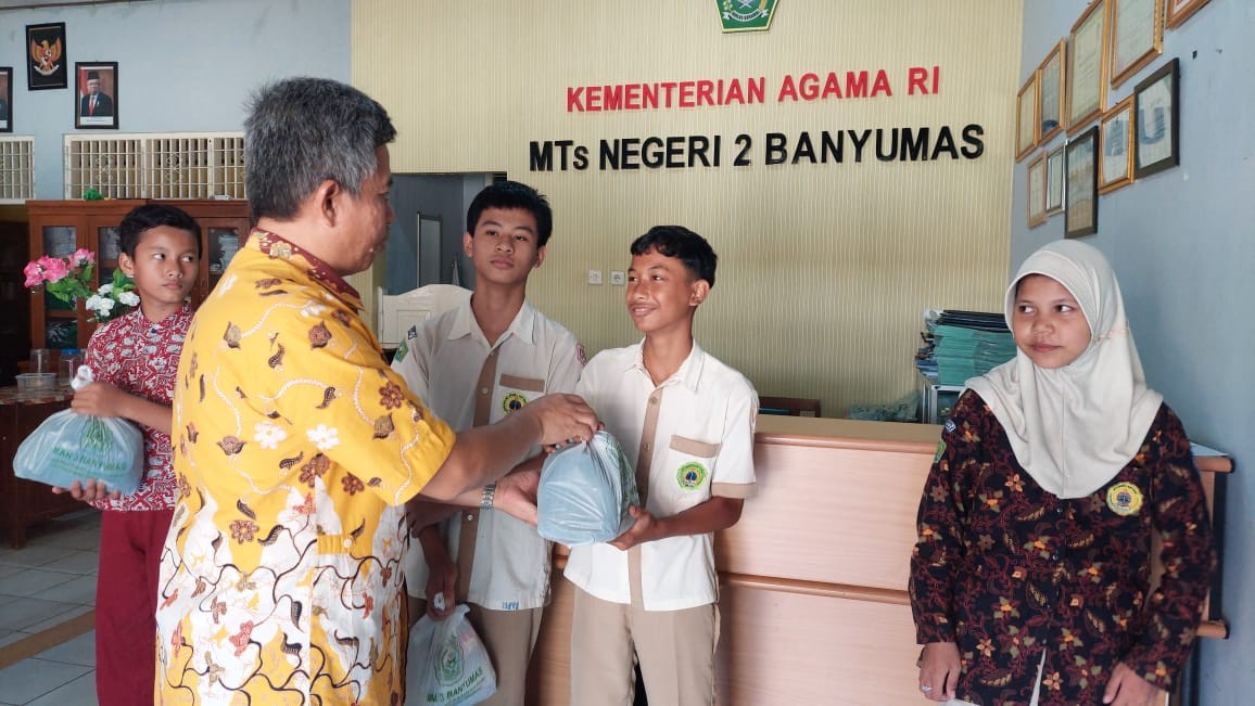 Banyumas (Humas) - Lima Puluh orang peserta didik (pesdik) MTsN 2 Banyumas terima santunan dari MAN 3 BANYUMAS dalam rangka menyambut Tahun Baru Islam 1446 H. Ke-50 orang anak yang menerima santunan sebagain adalah anak yatim, piatu dan sebagian anak kurang mampu, Kamis (18/7).