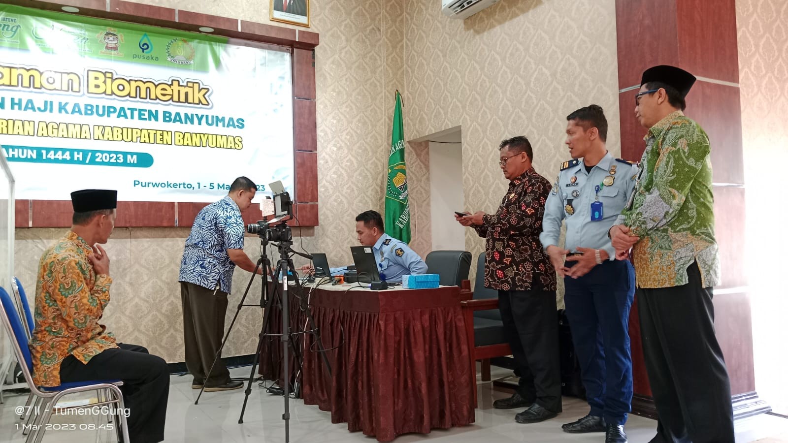 Perekaman Biometrik dilakukan dalam rangka persiapan pemberangkatan calon jamaah haji, dimana calon jamaah haji dikoordinir oleh Forum Komunikasi Kelompok Bimbingan Ibadah Haji (KBIH) yang ada di Banyumas.