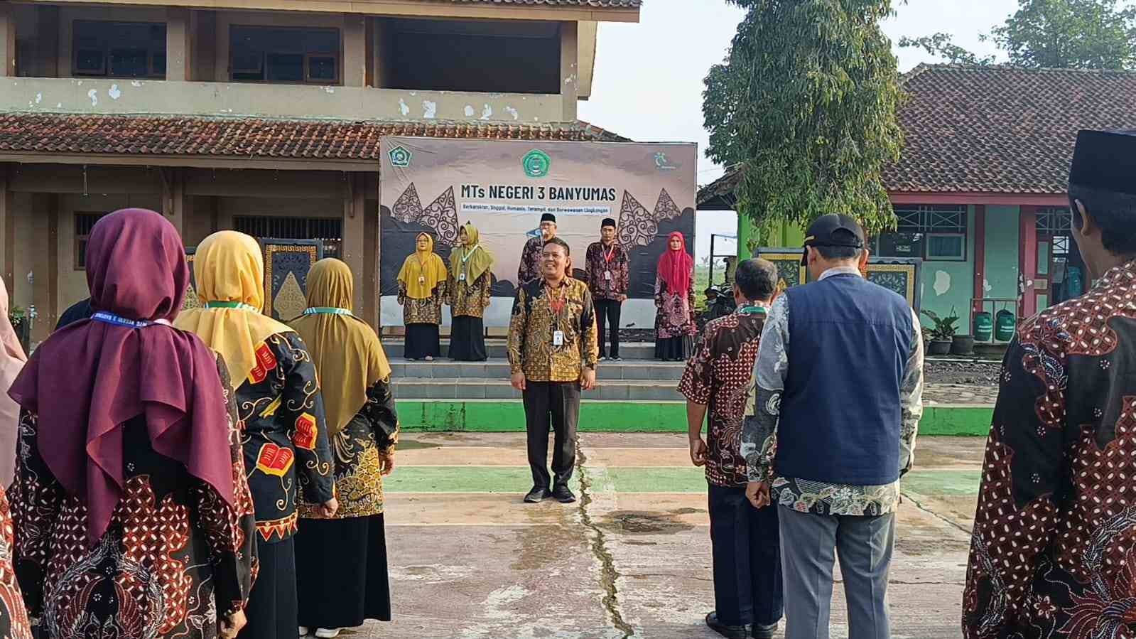 Banyumas — MTs Negeri 3 Banyumas kembali melaksanakan apel pagi Guru dan Tenaga Kependidikan (GTK) dengan penuh khidmat di halaman madrasah. Kegiatan rutin ini menjadi sarana pembinaan sekaligus penguatan komitmen seluruh GTK dalam menjalankan tugas secara profesional. Apel dipimpin oleh Riyadul Maki Aji Mahardika, selaku pemimpin apel, dengan pembina apel Kepala Madrasah, H. Sudir. Kamis (09/04)