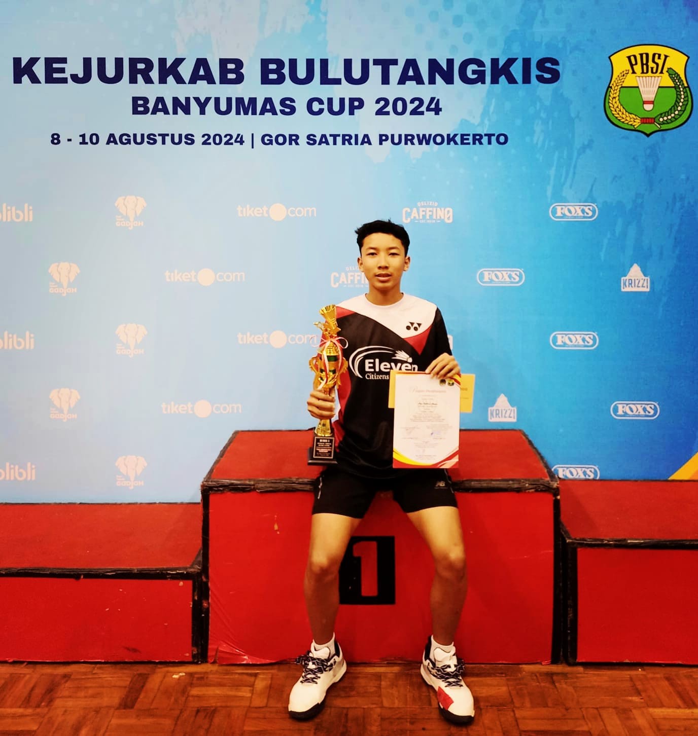 Humas MAN 1 Banyumas, - Kembali Ananda Arga Rabbani Abyasa, siswa kelas XI 12 MAN 1 Banyumas, menorehkan prestasi gemilang di ajang Kejuaraan Kabupaten (Kejurkab) Bulutangkis Banyumas Cup 2024. Arga berhasil meraih juara 1 pada kategori tunggal putra, sebuah pencapaian yang mengukuhkan posisinya sebagai salah satu atlet bulutangkis terbaik di kabupaten Banyumas.