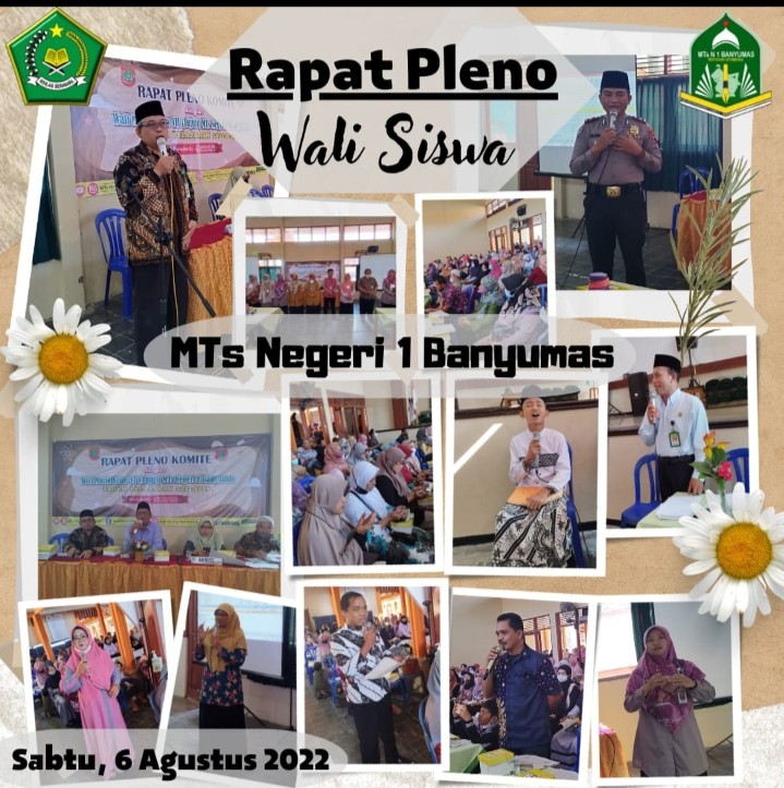 MTs Negeri 1 Banyumas melaksanakan rapat pleno wali siswa kelas VII pada Hari Sabtu, 6 Agustus 2022. Rapat dilaksanakan di Aula MTs Negeri 1 Banyumas pada pukul 09.00 WIB.
