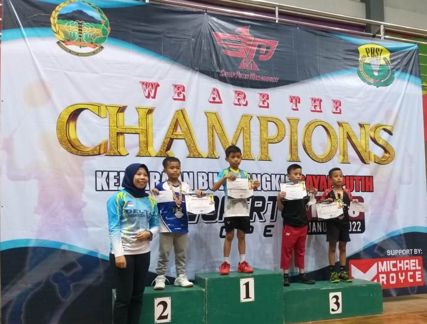 BANYUMAS – Atlet junior bulutangkis, Nauval Rasyid Adz Dzaki, siswa MIN 1 Banyumas yang saat ini masih duduk di kelas 2, berhasil meraih juara 1 dalam kejuaraan Bulutangkis Tunggal Pra Usia Dini Putra pada event Kejuaraan Bulutangkis Sayap Putih Purwokerto Open yang bertempat di GOR Satria pada Sabtu (15/01/2022).