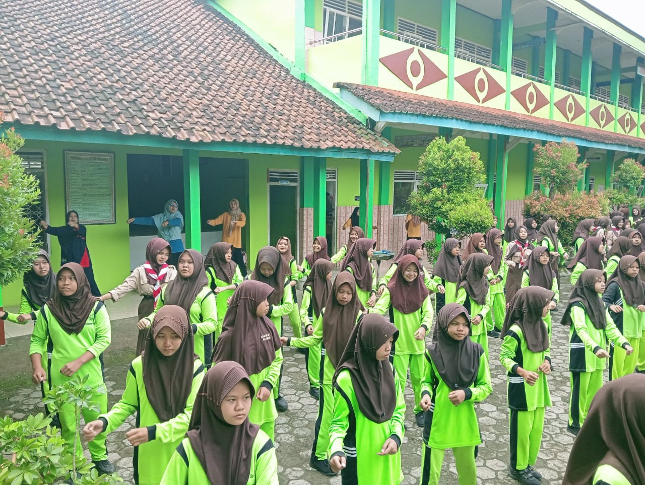 Kegiatan fisik ini diikuti oleh seluruh elemen madrasah, mulai dari jajaran guru, karyawan, hingga peserta didik dari kelas 7, 8, dan 9. Dengan dipandu oleh instruktur terampil dari klub olahraga madrasah, para peserta tampak antusias mengikuti setiap gerakan yang diiringi musik enerjik, menciptakan suasana ceria di lingkungan sekolah.