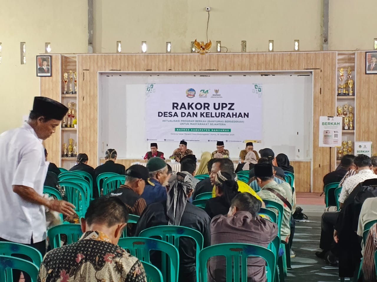Banyumas - Badan Amil Zakat Nasional (BAZNAS) Kabupaten Banyumas menggelar Rapat Koordinasi Unit Pengelola Zakat (UPZ) Desa se-Kawedanan Sumpiuh Banyumas di Gedung Sabar Menanti, Desa Kedunggede Kecamatan Banyumas. Rapat ini dihadiri oleh penyuluh agama, duta zakat, camat/kasi permas dan perwakilan UPZ Desa dari 7 kecamatan, yaitu Somagede, Banyumas, Kebasen, Patikraja, Sumpiuh, Tambak dan Kemranjen. Kamis (18/12)