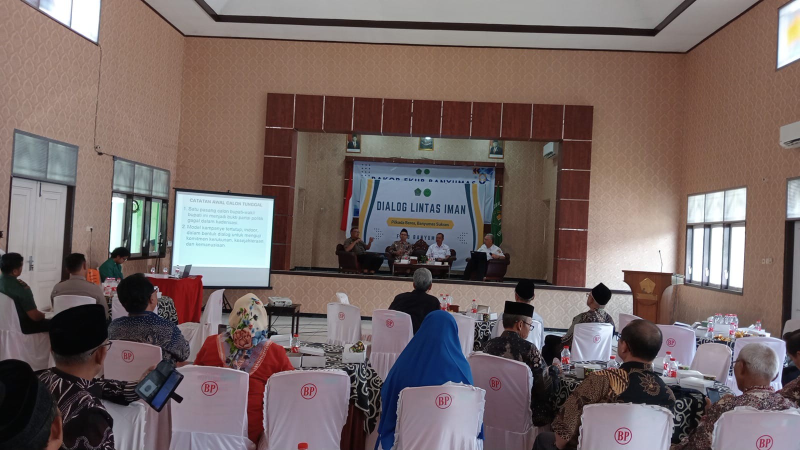 Purwokerto (Humas)– Forum Kerukunan Umat Beragama (FKUB) Kabupaten Banyumas kembali menggelar kegiatan dialog lintas agama yang bertujuan memperkuat kerukunan dan toleransi antarumat beragama di wilayah Banyumas. Acara yang berlangsung di Aula Al-Ikhlas, Kantor Kementerian Agama (Kemenag) Banyumas, pada hari ini, dihadiri oleh para tokoh agama dari berbagai agama yang ada di Banyumas, Kepala Kesbangpol, Polresta Banyumas, Kodim 0701 Banyumas, Dinsospermades, Pengurus FKUB, pengurus FKUB kecamatan, Spali, serta tamu undangan lainnya. Rabu (25/09)