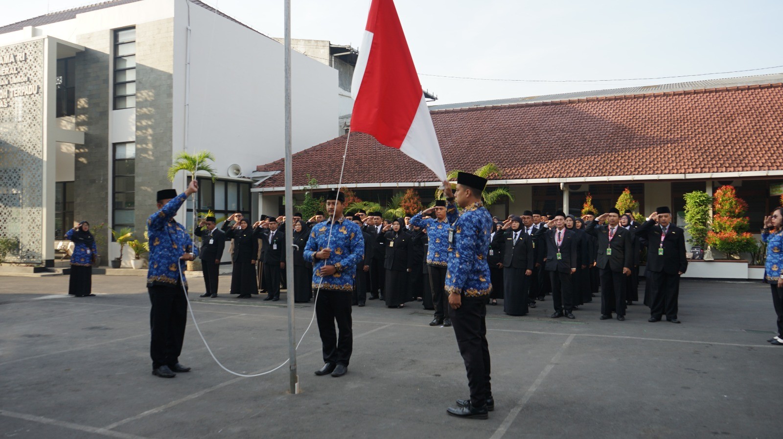 Purwokerto (Humas) – Kementerian Agama (Kemenag) Kabupaten Banyumas menggelar upacara bendera dalam rangka memperingati Hari Ulang Tahun (HUT) Kemerdekaan Republik Indonesia yang ke-79. Acara ini berlangsung dengan khidmat di halaman kantor Kemenag Banyumas dan diikuti oleh seluruh Aparatur Sipil Negara (ASN) yang bertugas di lingkungan kantor, serta penerima penghargaan Satyalancana Karya Satya. Sabtu (17/08)