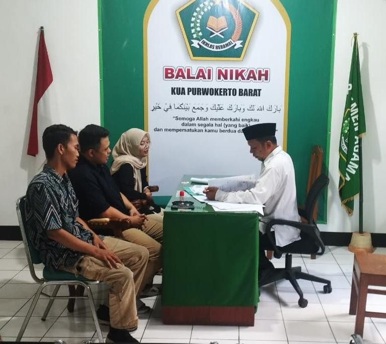 Banyumas – Kepala KUA Purwokerto Barat melaksanakan pemeriksaan berkas pernikahan calon pengantin (catin) atas nama Apryan Try Widodo dari Kelurahan Bobosan dengan Novia Amisbahur Riza dari Kelurahan Pasir Kidul. Selasa (21/04)