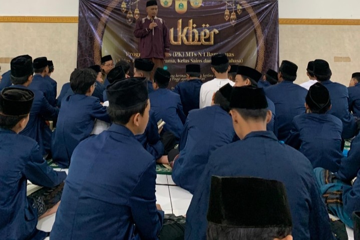 Purwokerto - Program Khusus MTsN 1 Banyumas yang meliputi kelas tahfidz berasrama, kelas sains, dan bahasa menggelar kegiatan buka bersama dalam rangka amaliyah ramadhan bertempat di Masjid Mambaul Ulum dan diikuti oleh seluruh Guru PK dan peserta didik kelas PK serta dewan pengasuh asrama. Senin (09/03)