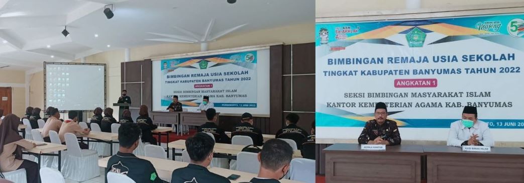Kepala Kantor Kementerian Agama Kabupaten Banyumas Aziz Muslim, S,Ag, M.Pd.I didampingi Kasi Bimas Islam Afifuddin Idrus membuka kegiatan Bimbingan Remaja Usia Sekolah. Kegiatan diadakan selama empat hari diikuti oleh siswa – siswi dari Madrasah , Rokhis dan IPNU/IPPNU Kabupaten Banyumas , bertempat di De Garden Resto Purwokerto, Jumat (17/06)