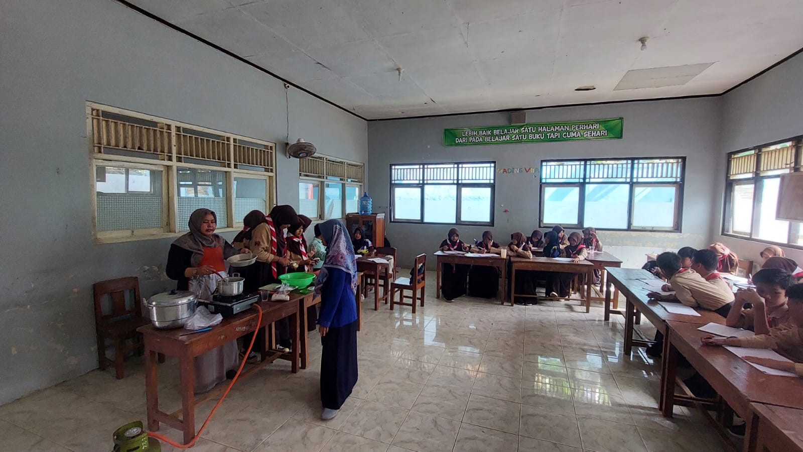 Banyumas _ Sabtu, (02/03/2024) seluruh guru fasilitator MTsN 2 Banyumas mengadakan kegiatan demonstrasi memasak dengan tema kewirausahaan yang dilakukan oleh seluruh fasilitator P5P2RA. Kegiatan demo memasak ini dilakukan dimasing-masing kelas VII sebanyak 6 kelas. Kegiatan dilaksanakan mulai pukul 07.30-11.00 wib.