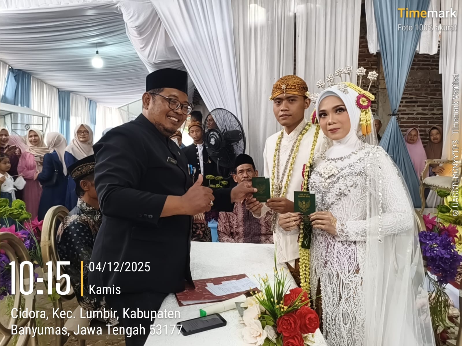 Prosesi ijab qabul dipimpin langsung oleh Kepala sekaligus Penghulu KUA Lumbir, Tohiron, yang memastikan seluruh rangkaian pernikahan berjalan sesuai syariat dan ketentuan perundang-undangan. Dengan suara lantang, tegas, dan penuh keyakinan, mempelai pria mengucapkan akad nikah, disambut dengan jawaban sah dari para saksi yang hadir. Kehikmatan suasana semakin menambah makna dalam prosesi tersebut.