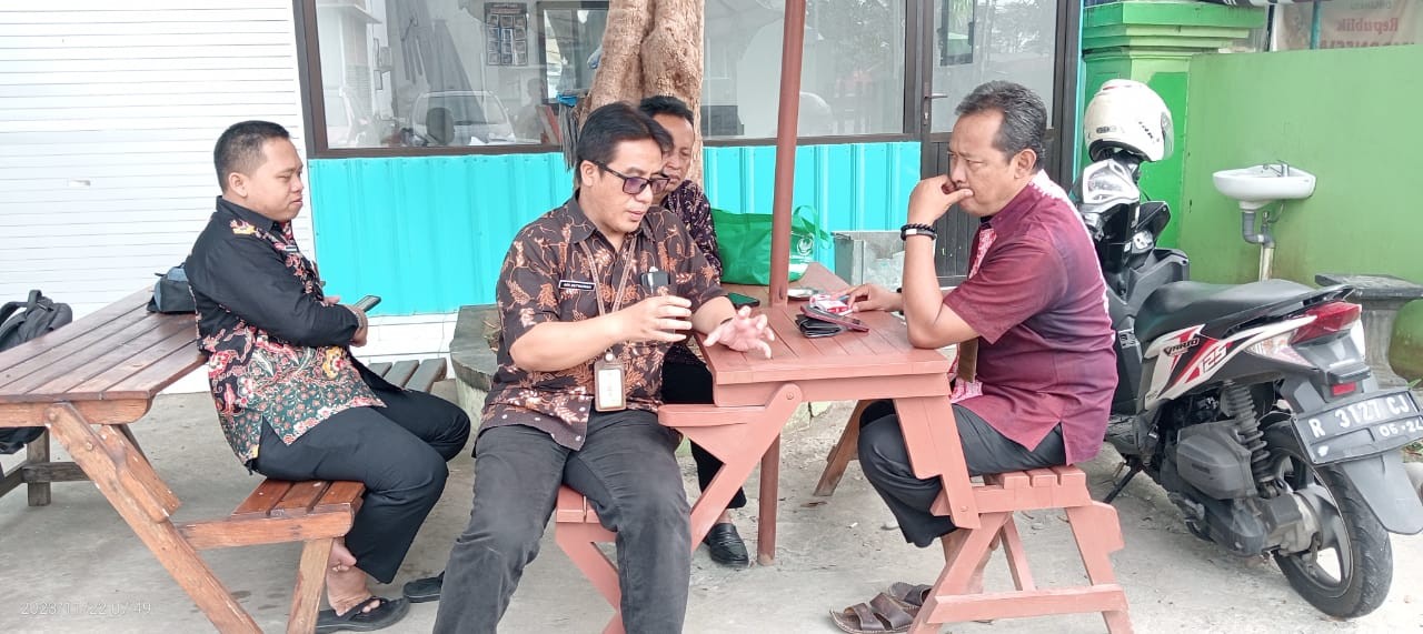 Purwokerto (Humas) : Dari pojok kantin, Kepala Kantor Kementerian Agama Kabupaten Banyumas Ibnu Asaddudin bersama dengan Kasi Pendma Edi Sungkowo dan bendahara kantor Ari Setiawan mendiskusikan terkait dengan pelaksanaan penggunaan Digital Payment (DIGIPAY) dilingkungan kantor Kemenag Kabupaten Banyumas.Rabu (22/11)