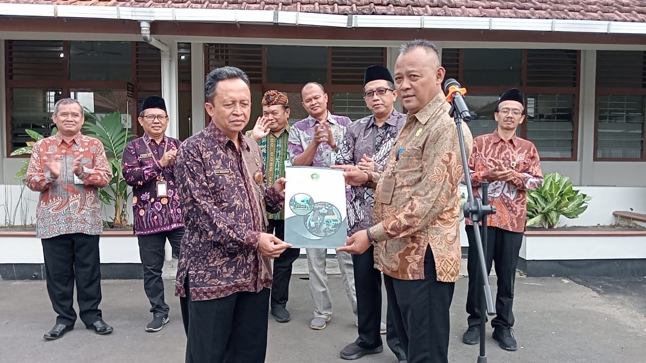 Purwokerto (Humas) - Dr. H. Edi Sungkowo, M.Pd. resmi ditunjuk sebagai Pelaksana Harian (PLH) Kepala Kantor Kementerian Agama Kabupaten Banyumas. Penyerahan Surat Keputusan (SK) dilakukan oleh Kepala Kantor Kemenag Banyumas, Dr. H. Ibnu Asaddudin, S.Ag., M.Pd., bertempat di halaman kantor saat apel, Penunjukan ini dilakukan sehubungan dengan rencana H. Ibnu Asaddudin yang akan mengikuti Diklat. Rabu (26/02).