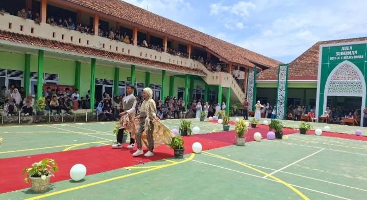Purwokerto - MTs N 1 Banyumas menggelar acara fashion show dalam rangka memperingati hari batik nasional 2 Oktober 2025 bertempat di lapangan tengah MTs N 1 Banyumas dan diikuti oleh seluruh perwakilan kelas 7,8 dan 9 pada pukul 10.00 WIB.