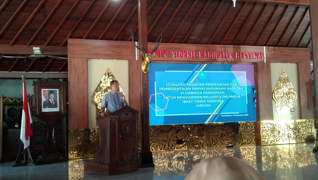 Purwokerto – Kemenag Kabupaten Banyumas menggelar sosialisasi Pencegahan dan Pemberantasan Narkoba di Lembaga Pendidikan demi mewujudkan KRISAN (Keluarga Indonesia Sehat Tanpa Narkoba). Kegiatan yang diikuti oleh Wakil Kepala Kesiswaan dan guru Madrasah Aliyah se-Banyumas ini diselenggarakan di Pendopo Sipanji Kabupaten Banyumas. Jumat (12/12)