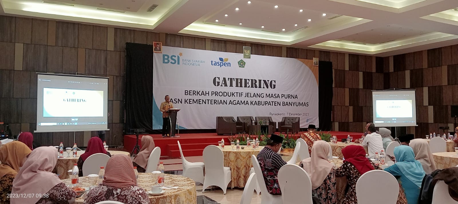 BSI Cabang Purwokerto menggelar kegiatan gathering bagi ASN Kantor Kementerian Agama Kabupaten Banyumas yang akan memasuki masa pensiun dengan tema Gathering Berkah produktif Jelang Masa Purna bertempat di Karlita Hotel Purwokerto, Kamis (7/12)