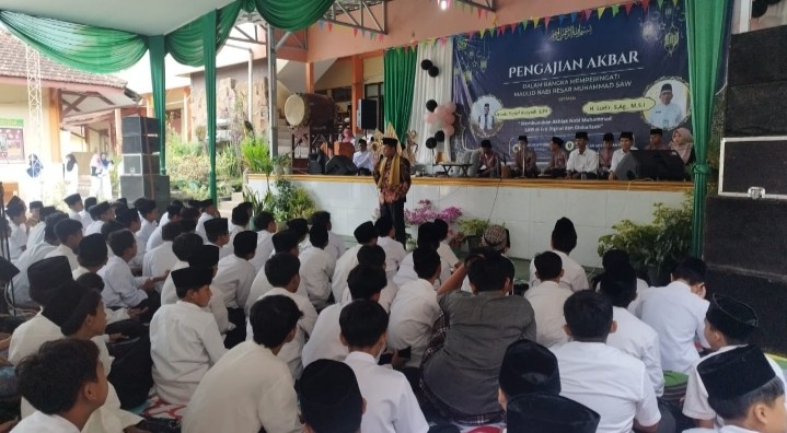 Purwokerto - MTs Negeri 1 Banyumas merayakan Maulid Nabi Besar Muhammad SAW dengan mengadakan pengajian akbar yang bertempat di lapangan tengah dan diikuti oleh seluruh guru dan karyawan serta peserta didik kelas 7,8, dan 9 dan dihadiri oleh Kasi Penmad Kementerian Agama Kabupaten Banyumas, Pengawas madrasah dan komite madrasah pada hari Rabu, 10 September 2025.
