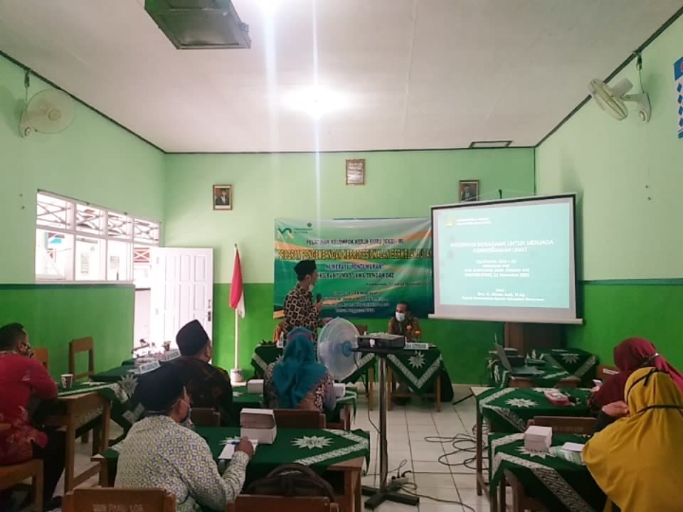 Banyumas : " Esensi agama itu ada tiga yaitu harus memuliakan manusia, menjaga harkat martabat manusia, menjaga peradaban dan keadaan manusia. Tanpa agama hidup kita kacau Balau." Hal tersebut disampaikan oleh kepala kantor Kemenag Banyumas Drs.H.Akhsin Aedi, M.Ag saat memberikan materi moderasi beragama di acara Pelatihan Kelompok Kerja Guru (KKG) MI Program Pengembangan Keprofesionalan Berkelanjutan (PKB) MI Banyumas Jawa Tengah 042 bertempat di MI Muhammadiyah Pasir Kulon Kecamatan Karanglewas, Kamis (11/11)