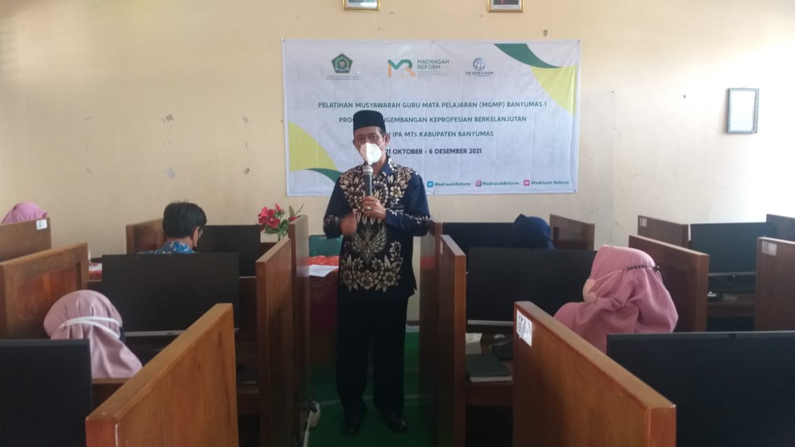 Purwokerto : 35 guru IPA se kabupaten Banyumas yang tergabung dalam Musyawarah Guru Mata Pelajaran (MGMP) Banyumas 1 mengikuti Pelatihan Program Pengembangan Keprofesian Berkelanjutan yang diadakan di MTs N 1 Banyumas. Acara Pelatihan tersebut dibuka oleh kepala Kantor Kemenag Banyumas Drs.H.Akhsin Aedi,M.Ag.(Kamis,21/10)