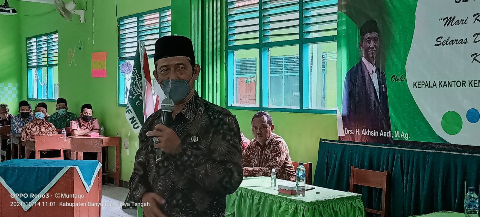Banyumas : Kepala Kantor Kemenag Banyumas Drs. H. Akhsin Aedi, M.Ag beserta Kasubag TU Ibnu Asaduddin dan Kasi Pendma Edi Sungkowo menghadiri pembinaan guru MA, MTs, MI dan RA se kec. Sumpiuh bertempat di MTs Ma'arif NU 1 Sumpiuh (Kamis, 4/10).