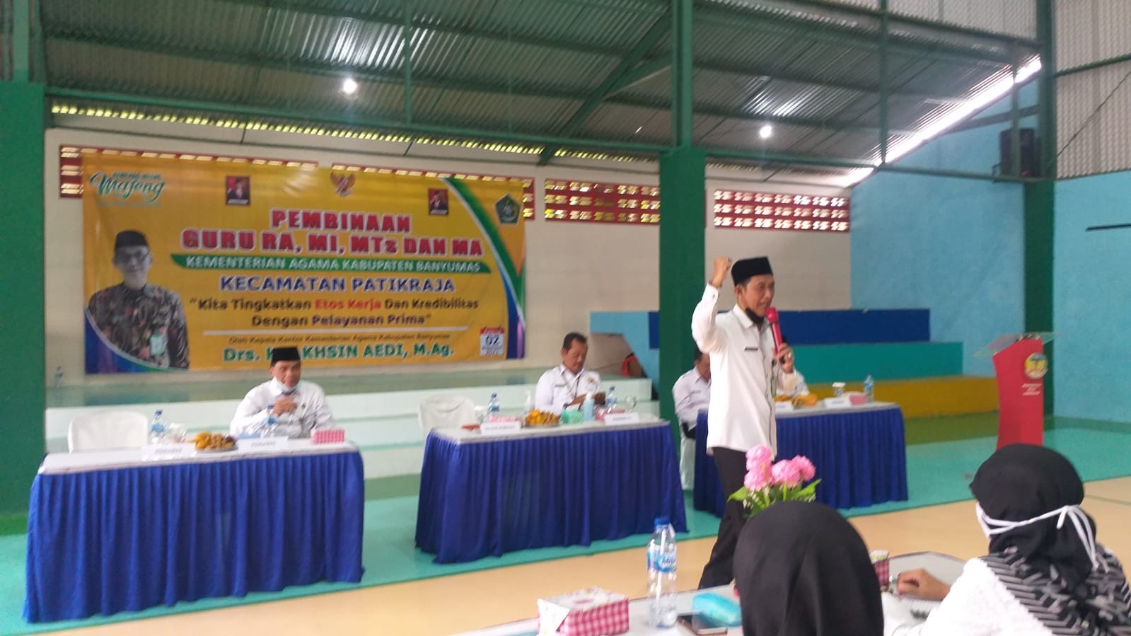 Banyumas : Kepala kantor Kemenag Banyumas Drs. H.Akhsin Aedi, M.Ag didampingi Kasubag TU Ibnu Asaddudin , Kasi Pendma Edi Sungkowo , Pengawas RA/MI Rustanto, Pengawas MTs / MA Amin Zuhdi, Pengawas MTs/MA Siti Nur Irhami menghadiri acara pembinaan bagi tenaga pendidik dan kependidikan RA, MI, MTs, dan MA kecamatan Patikraja bertempat di gedung kazanah Bola Voli Patikraja. Selasa (2/11)
