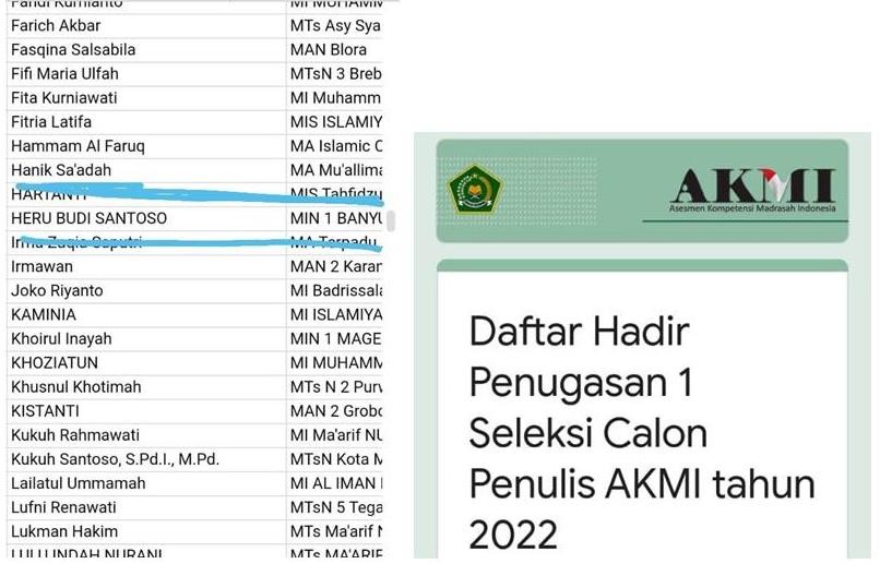 “Kami ucapkan selamat kepada Pak Heru yang telah lolos tahap 1, yaitu tahap seleksi administrasi rekrutmen calon penulis AKMI tahun 2022,” ucap Saridin.