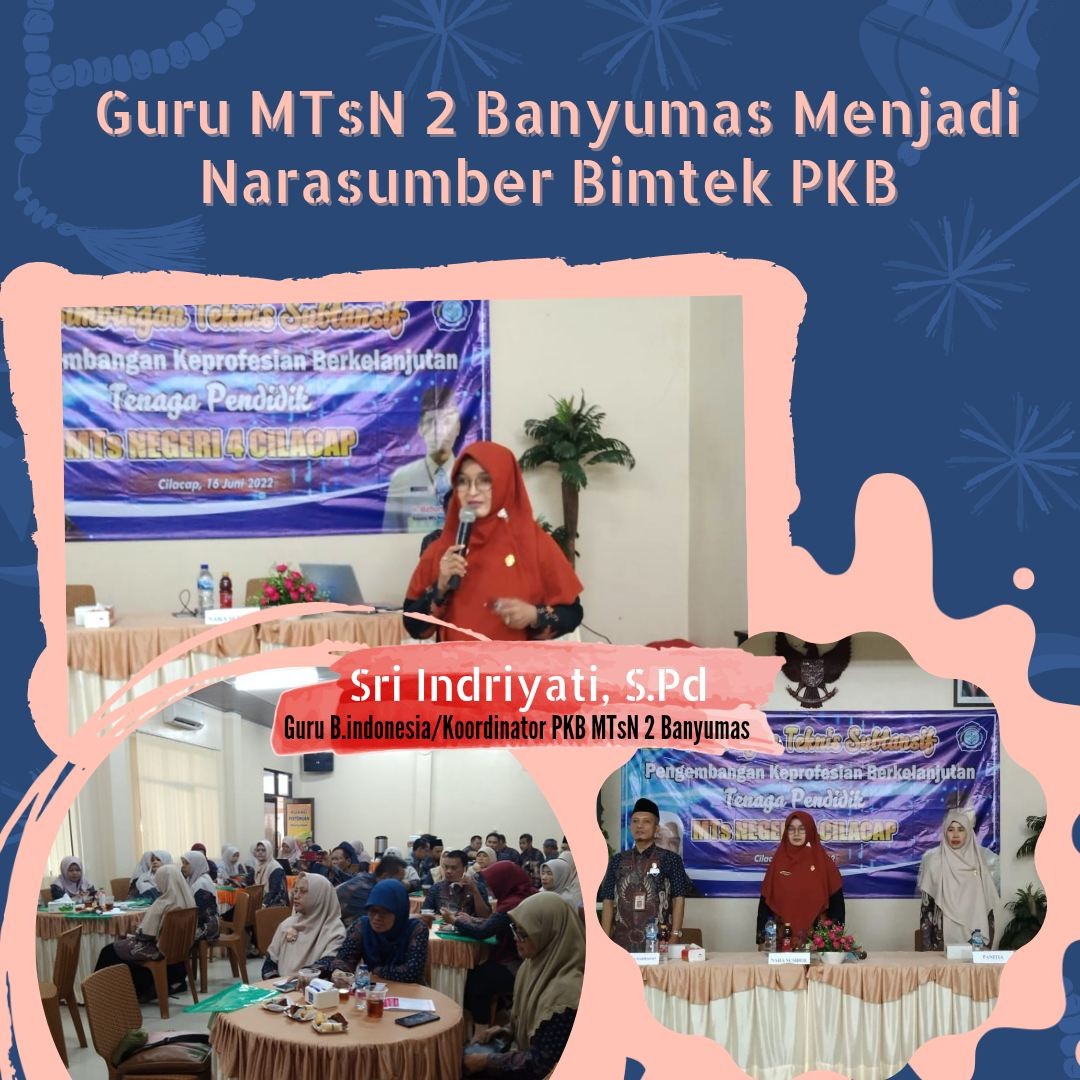 Banyumas – Salah satu guru MTs Negeri 2 Banyumas, Sri Indriyati dberi kepercayaan sebagai narasumber dalam kegiatan Bimbingan Teknis Substantif Pengembangan Keprofesian Berkelanjutan (PKB) yang digelar oleh MTs Negeri 4 Cilacap pada Kamis (16/06/2022). Kegiatan Bimtek Substantif Pengembangan Keprofesian Berkelanjutan Bagi Tenaga Pendidik MTsN 4 Cilacap diikuti oleh 47 peserta yang bertempat di RM Mbak Rum Kroya Cilacap.