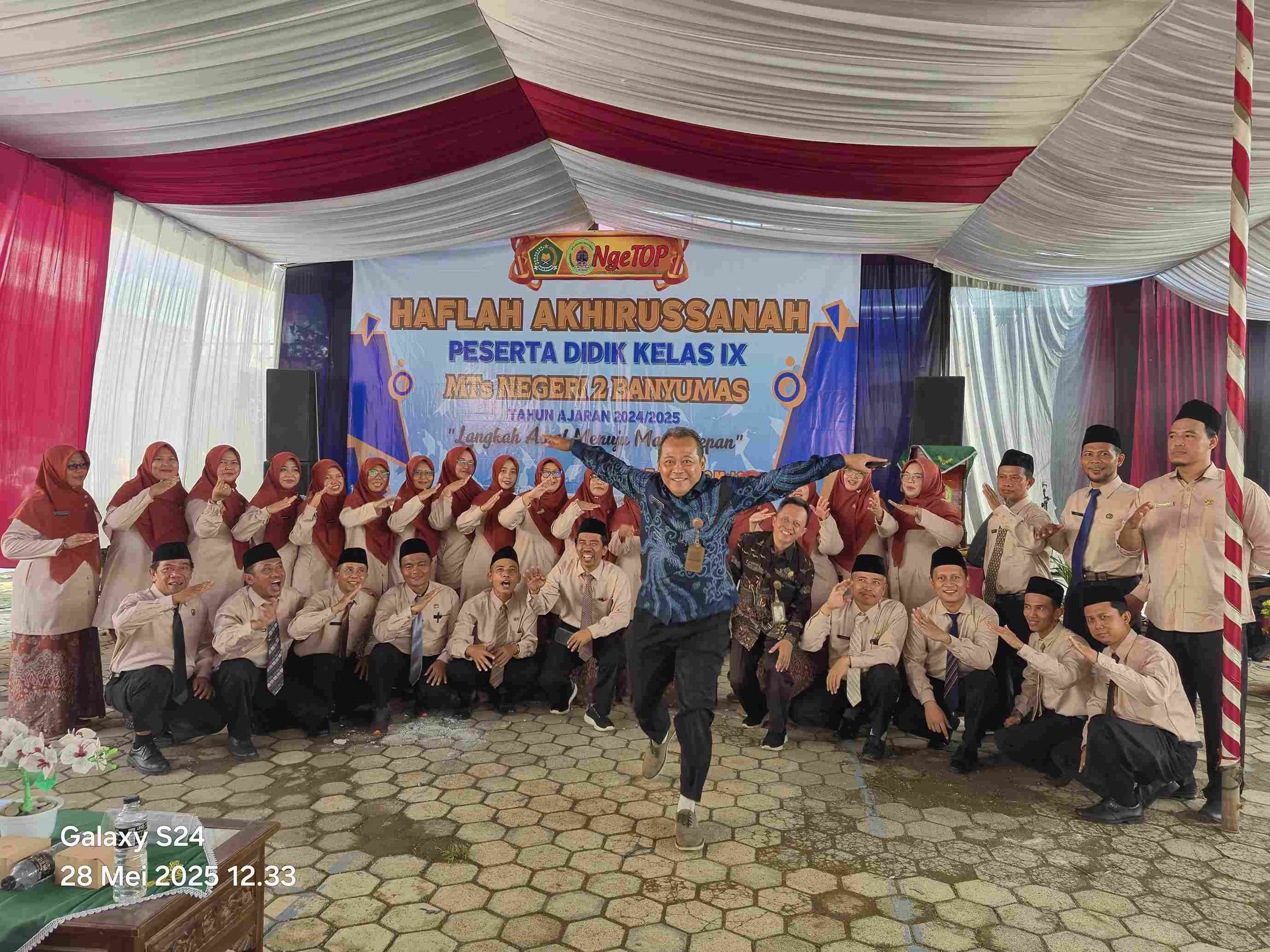 Banyumas (Humas) -- Acara akhirusanah kelas IX MTsN 2 Banyumas yang diikuti oleh 197 siswa berlangsung sangat meriah, semarak dan penuh kebahagiaan. Sebanyak 111 pesdik putra dan 86 pesdik putri mengikuti acara akhirusanah diselenggarakan pukul 07.30 WIB di halaman depan MTsN 2 Banyumas, Rabu, (28/05/2025).