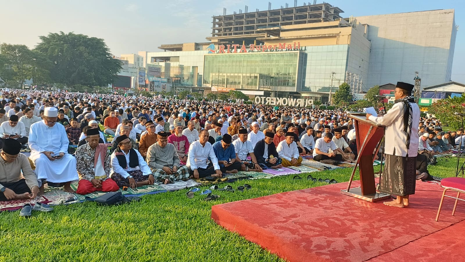 Purwokerto (Humas) - Ribuan masyarakat padati alun-alun kota Purwokerto untuk melaksanakan Sholat Idul Adha 1445 H. Senin, (17/6)