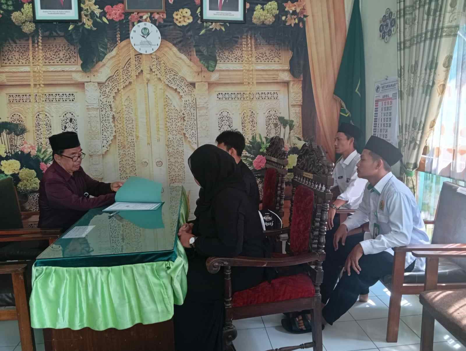 Banyumas - Suasana haru dan penuh kekhidmatan menyelimuti Kantor Urusan Agama (KUA) Rawalo saat dua orang atas nama Farel dan Avrilia dari Desa Menganti Kecamatan Rawalo secara resmi mengikrarkan syahadat dan memeluk agama Islam, hari ini. (Selasa 14/04)