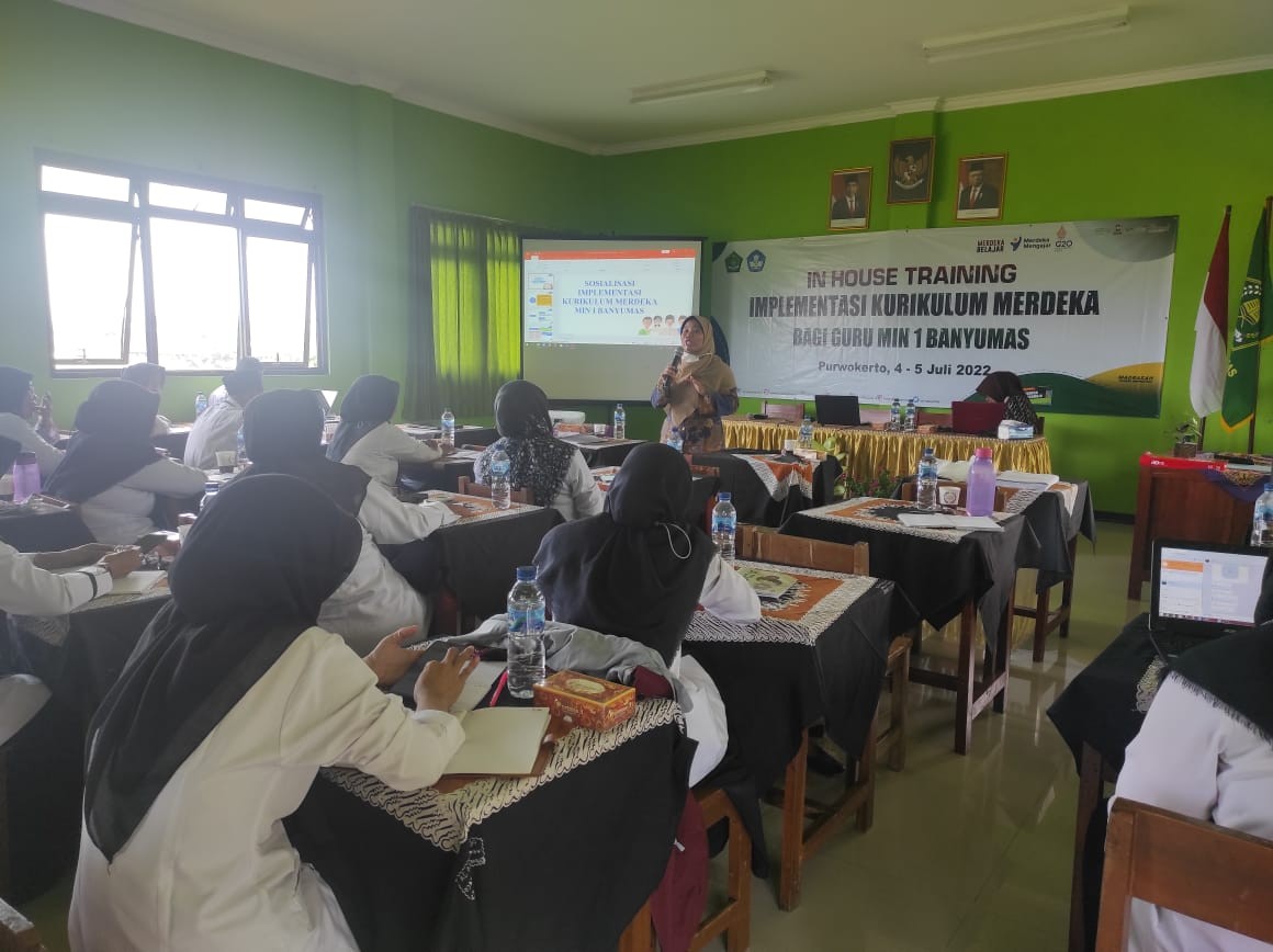 Dalam mempersiapakan SDM dalam implementasi Kurikulum Merdeka, MIN 1 Banyumas mengadakan acara In House Training Kurikulum Merdeka yang digelar pada Senin – Selasa, 4 – 5 Juli 2022, bertempat di Aula MIN 1 Banyumas. Sejumlah 43 tenaga pendidik mengikuti IHT dengan penuh antusias. In-House Training adalah program pelatihan yang dilakukan dengan materi, waktu, serta tempat pelatihan ditentukan sesuai dengan kebutuhan.