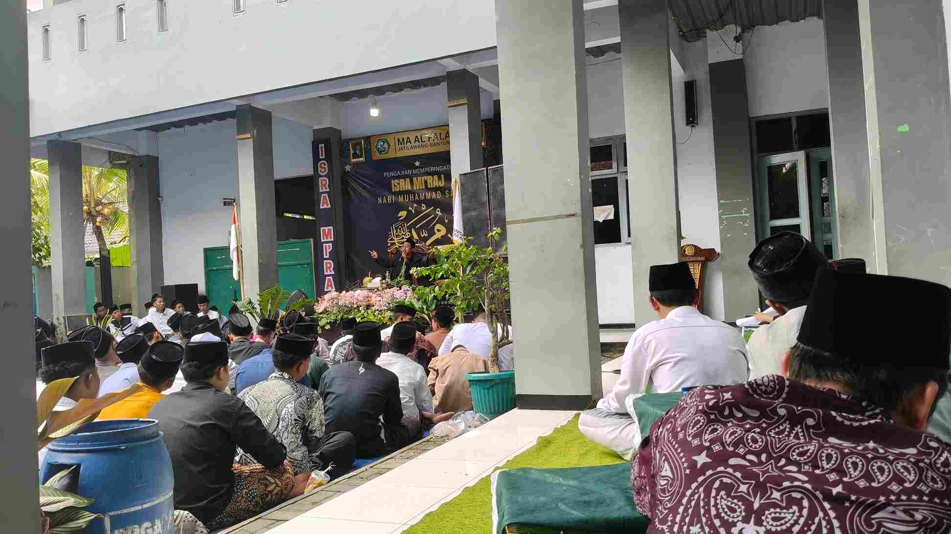 Peringatan Isra Mi’raj tersebut dilaksanakan dalam bentuk pengajian keagamaan yang diisi oleh Ust. Ahmad Suseno, seorang ulama yang dikenal di lingkungan sekitar madrasah. Acara dimulai pada pukul 09.00 WIB dengan rangkaian kegiatan yang diawali pembacaan lantunan ayat-ayat suci Al-Qur’an. Al-Qur’an merupakan mukjizat terbesar yang senantiasa terjaga keutuhannya sepanjang zaman, sehingga wajib untuk diimani dan diamalkan dalam kehidupan sehari-hari. Setiap orang yang membaca maupun mendengarkan ayat-ayat suci Al-Qur’an diyakini akan memperoleh keberkahan dan ketenangan hati.