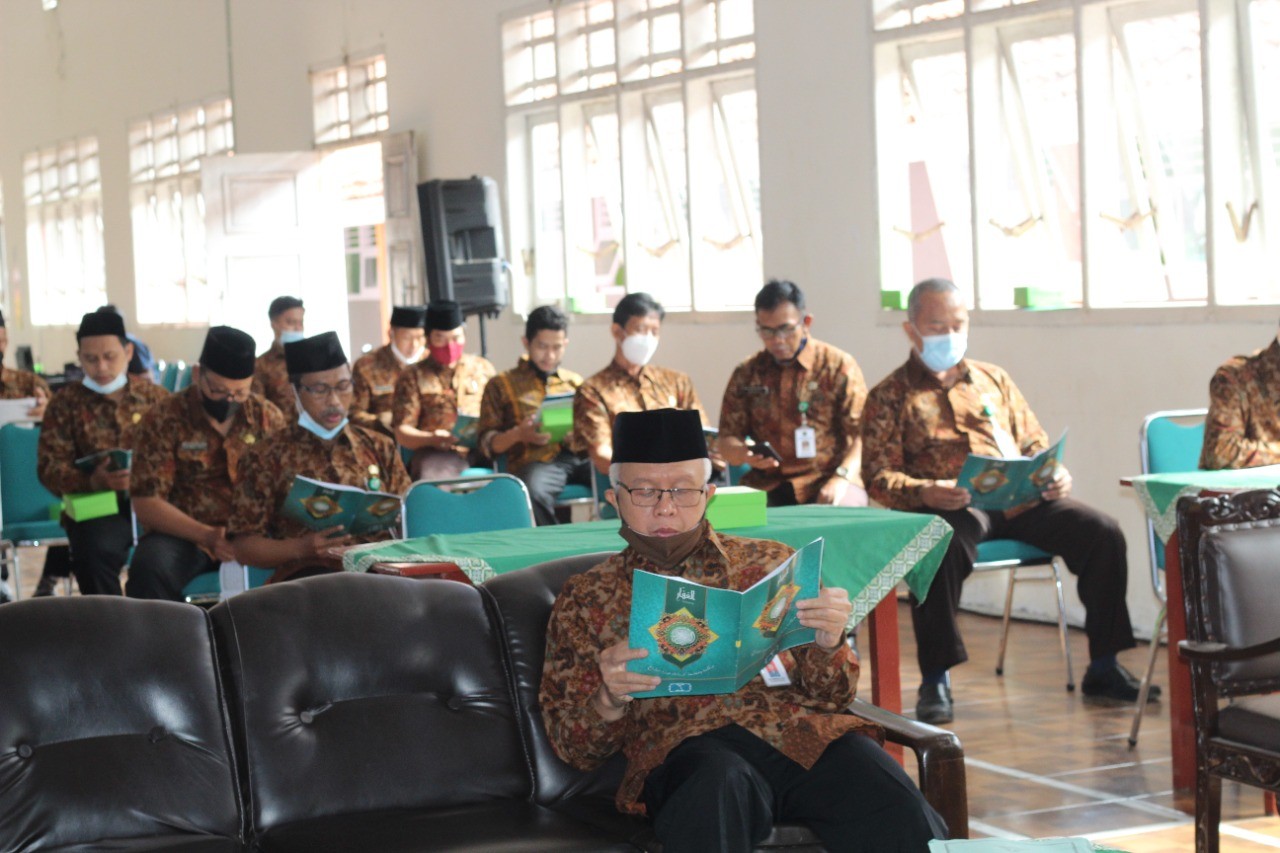 Purwokerto : Khotmil Quran merupakan budaya madrasah yang dapat menumbuhkan keikhlasan dan kepasrahan kepada Allah SWT Sehingga tenaga pendidik dan kependidikan serta seluruh siswa dapat menjalankan tugas pengabdiannya secara total yang dilandasi semangat spiritual " hal tersebut disampaikan oleh Imam Sayoga selaku kepala madrsasah menanggapi diadakanya kegiatan Khotmil Quran di MAN 1 Banyumas.(Kamis,07/10)