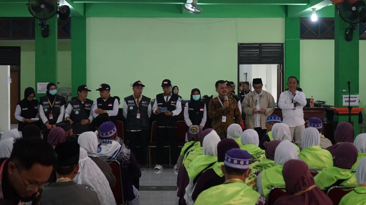 Calon jamaah haji kloter 20 tiba di Asrama Haji Donohudan pukul empat pagi setelah menempuh perjalanan selama tujuh jam dari GOR Satria Purwokerto, setelah dilepas secara resmi oleh PJ Bupati Banyumas Hanung Cahyo Saputro tanggal 14 Mei pukul 21.00 WIB. (Yud)