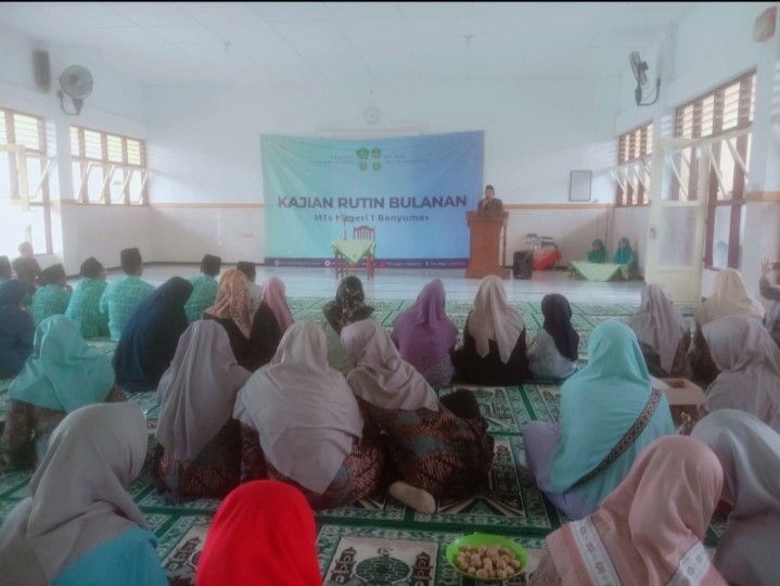 Kajian rutin bulanan merupakan kegiatan yang dilaksanakan dalam rangka meningkatkan wawasan pengetahuan ilmu agama sebagai landasan untuk meningkatkan keimanan dan ketakwaan kepada Allah SWT sekaligus sebagai upaya untuk peningkatan ikatan silaturahmi antara wali santri dengan dewan asatid Ma'had Insan Cendekia MTs Negeri 1 Banyumas.