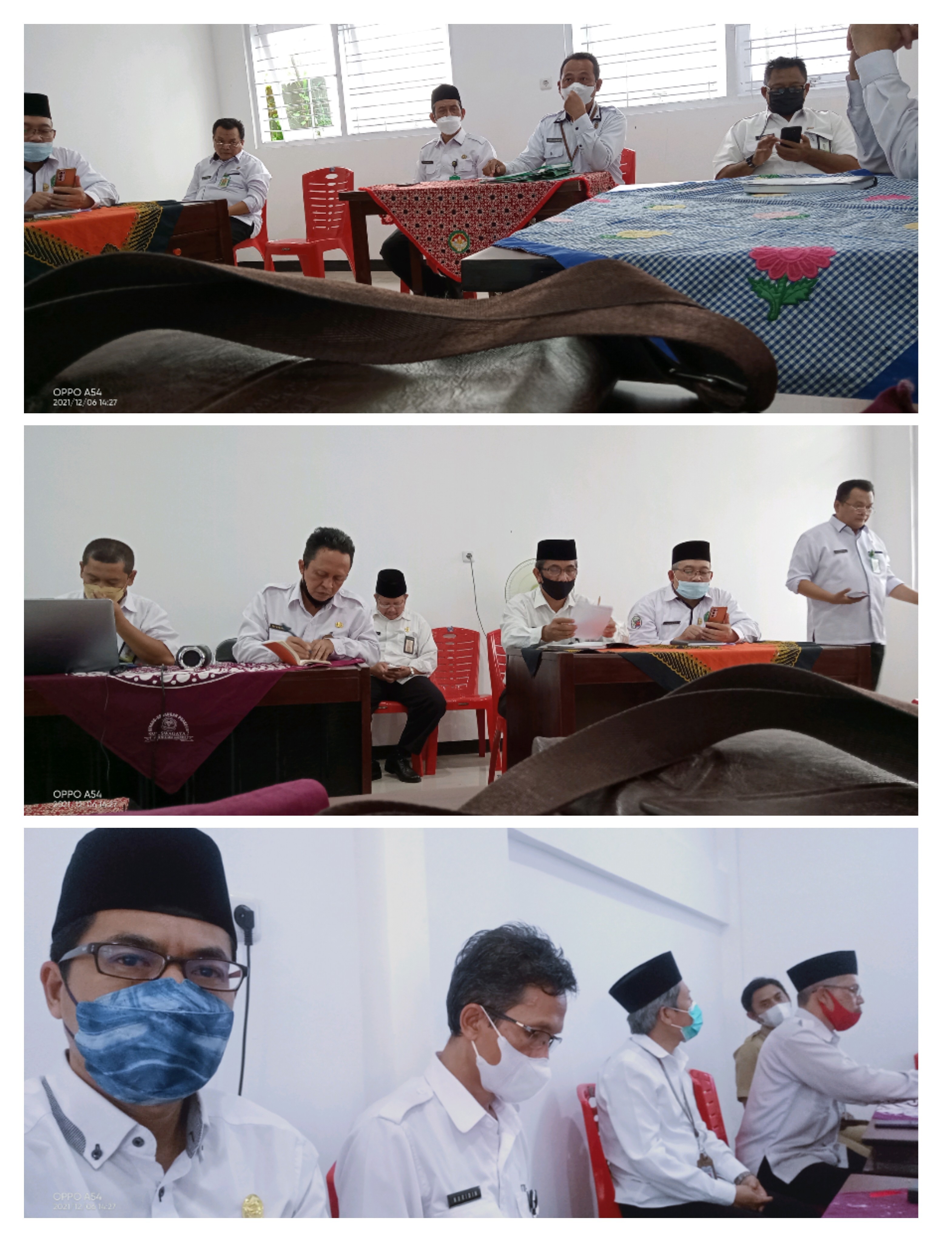 Purwokerto - Rapat Koordinasi Kankemenag Kabupaten Banyumas dalam rangka penyampaian 9 tugas Menteri Agama RI dan penyampaian hasil zoomeeting Kanwil Kemenag Jateng tentang peduli Semeru, dipimpin langsung oleh Kakankemenag di ruangan eks keuangan, Senin (6/12).