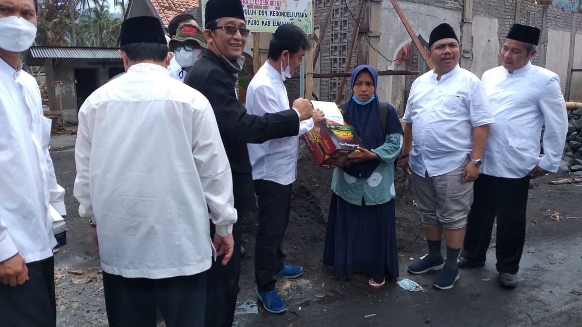 Lumajang : Kepala Kanwil Kemenag Prov. Jateng H. Musta'in Ahmad, SH, MH didampingi oleh Kabid Penaiszawa H. M. Afief Mundzir, S.Ag, M.SI , Kakan Kemenag Kab. Banyumas Drs. H. Akhsin Aedi, M.Ag, Kakan Kemenag Kab. Batang H. M. Aqsho, M.Ag dan Kakan Kemenag Kab. Sukoharjo Drs. H. Muh. Mu'alim, M.Pd.I menyalurkan bantuan uang tunai sebesar 500 juta rupiah , sarung sebanyak 1000 lembar tembakau dari paguyuban petani tembakau Temanggung sebanyak 2 karung serta uang sejumlah 4 juta dari komunitas vespa Semarang untuk korban terdampak erupsi gunung Semeru di kabupaten Lumajang yang diterima oleh kakan Kemenag kabupaten Lumakang Jawa Timur Muhammad Muslim,S.Ag, M.Sy bertempat di aula kantor Kemenag kab. Lumajang, Sabtu (11/12).