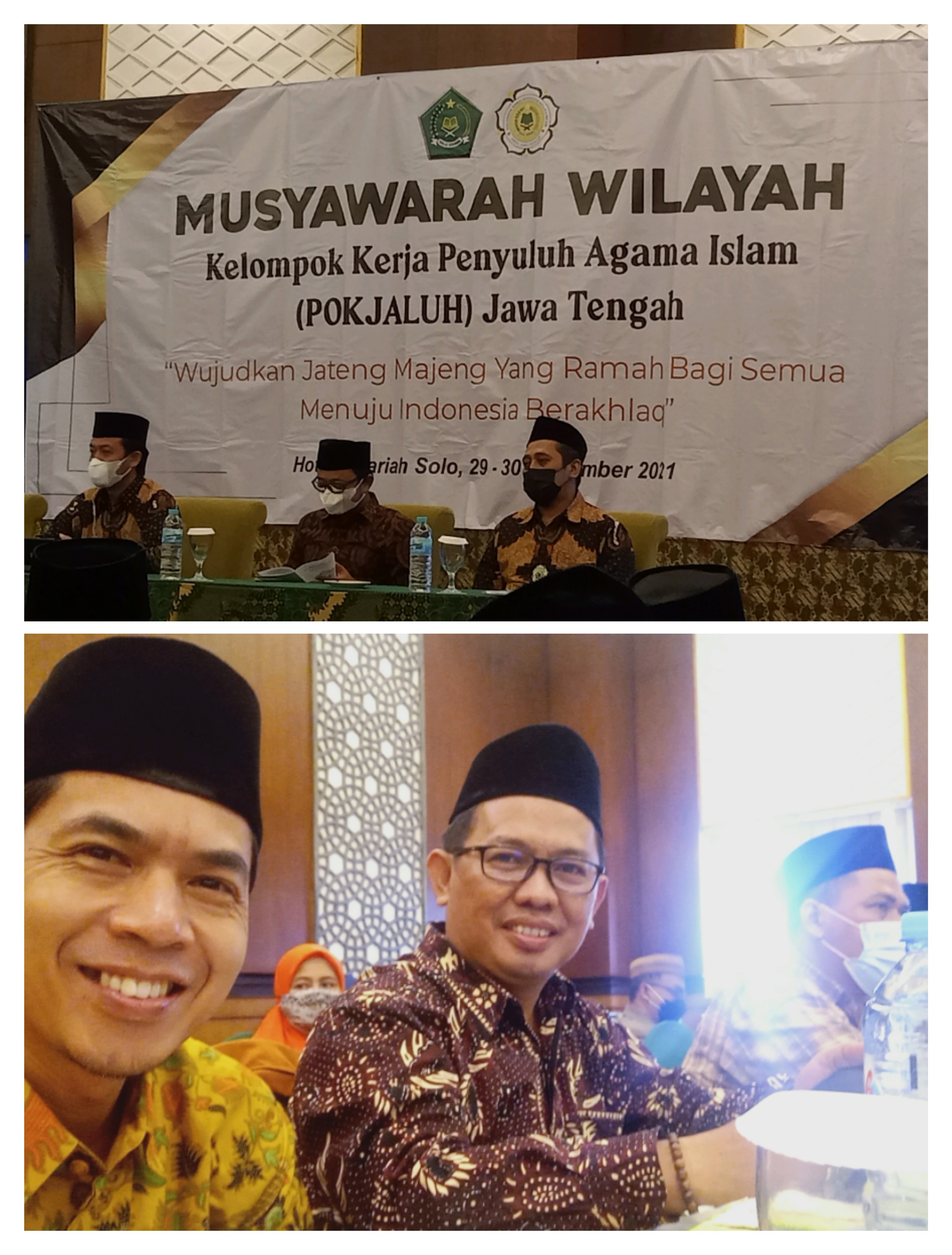 Solo – Ketua Pokjaluh Kabupaten Banyumas mengikuti Musyawarah Wilayah (Muswil) Kelompok Kerja Penyuluh Agama Islam (Pokjaluh) Provinsi Jawa Tengah Tahun 2021 yang mengusung tema Mewujudkan Jateng Majeng Yang Ramah Bagi Semua Menuju Indonesia Berakhlak digelar di Hotel Syariah Solo, Senin-Selasa (29-30/11).