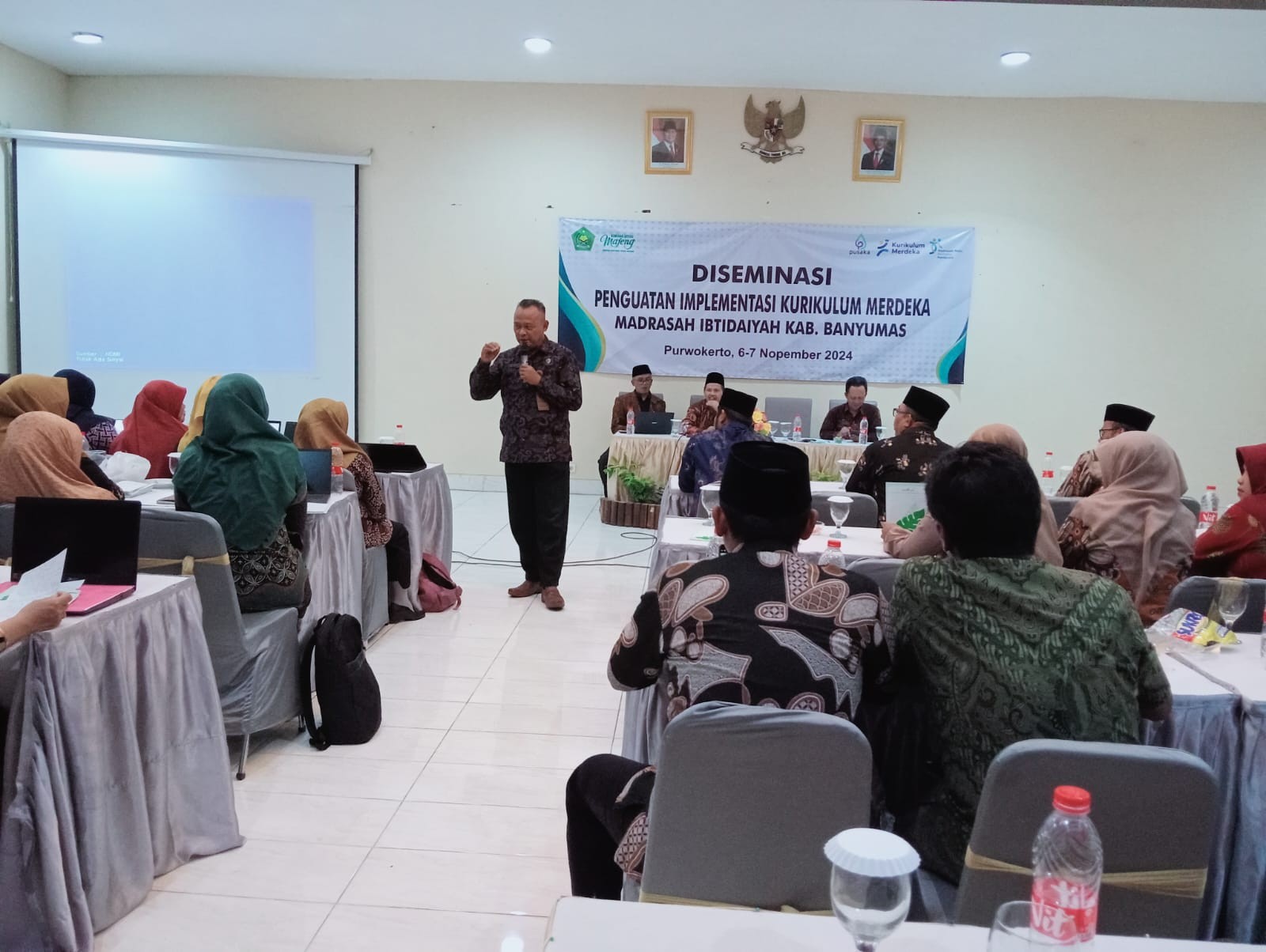 Purwokerto (Humas)- Kepala Kantor Kementerian Agama Kabupaten Banyumas, Ibnu Asaddudin, secara resmi menutup kegiatan Diseminasi Penguatan Implementasi Kurikulum Merdeka Madrasah Ibtidaiyah (MI) yang diselenggarakan oleh KKM MI Kabupaten Banyumas pada 6-7 November 2024 di Hotel Grand Valey Baturraden. Kegiatan ini diikuti oleh 64 peserta, termasuk Ketua Kelompok Kerja Madrasah Ibtidaiyah (KKM MI), Kepala Madrasah, serta operator madrasah di Kabupaten Banyumas.Kamis (07/11)