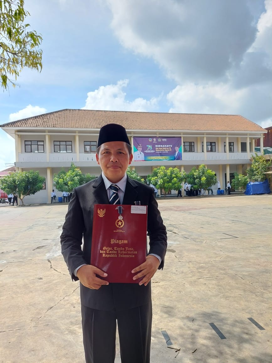 Tanda kehormatan tersebut diberikan mengingat pengabdian dan dedikasi yang dilakukan oleh H. Saridin, S.Ag. M.Pd. sebagai Aparatur Sipil Negara (ASN) kepada kantor tempat bekerja dan kepada Negara Kesatuan Republik Indonesia (NKRI). Tanda kehormatan adalah penghargaan negara yang diberikan oleh presiden kepada seseorang, kesatuan, institusi pemerintah, atau organisasi atas darma bakti dan kesetiaan yang luar biasa terhadap bangsa dan negara.td.